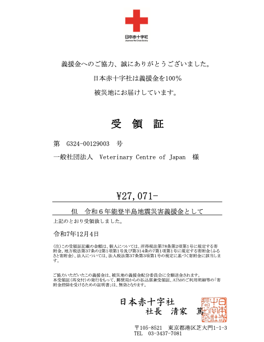 日本赤十字社への協力…令和6年能登半島地震災害義援金を送りました